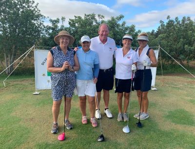 The first to drive off into the early morning sunshine were three ladies, Hazel Padgett, Katrina Iho and Margaret Morrison. The first three drives were watched by the waiting queue of golfers and they set the standard for the day.