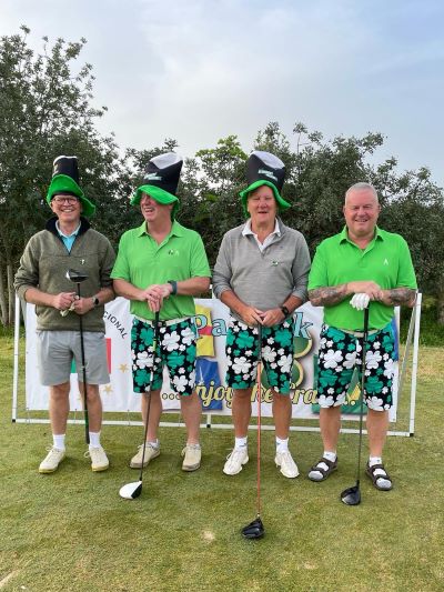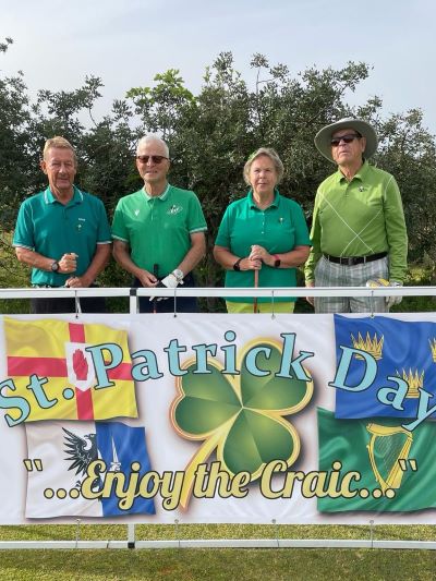 A photo of each four ball was taken by Yvonne at the fantastic new St Patrick's Day banner (as seen in the photographs), designed by Bob Clarke, with a little help from Rikki.