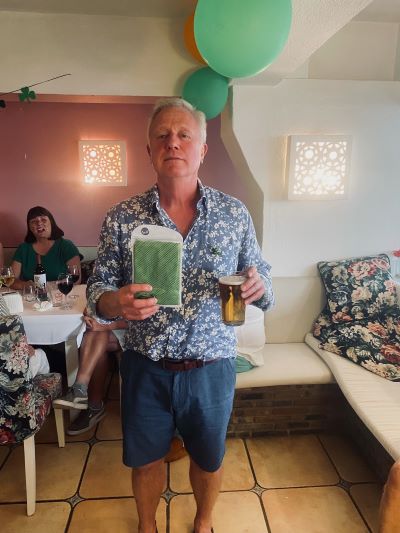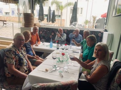 Following the competiton 45 members headed to the Central Café in Carvoeiro to carry on with the festivities. Members were welcomed at the door by Captain Stuart. The ambience in the restaurant was fantastic. A play list of Irish music, compiled by Rikki, blared out across Carvoeiro and the colourful Irish decorations and balloons added to the ambience.